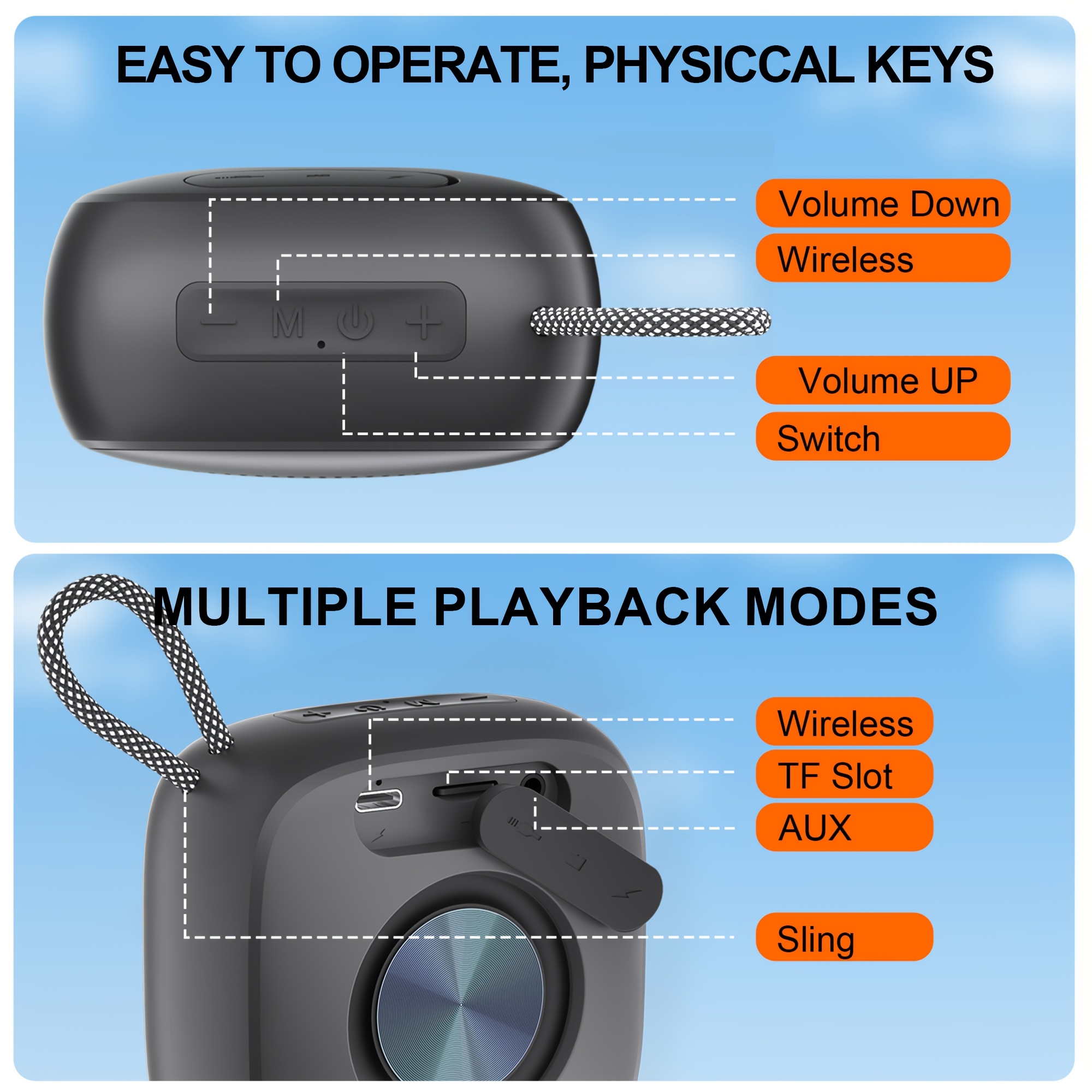 • [Portable Wireless Speaker] Portable Wireless Speaker | Stereo, Automatic Call Cut-Off, Private Protection, FM Radio, TF Card, USB, Type-C Charging, Convenient Lanyard, Suitable for Birthday Gifts or Outdoor Camping