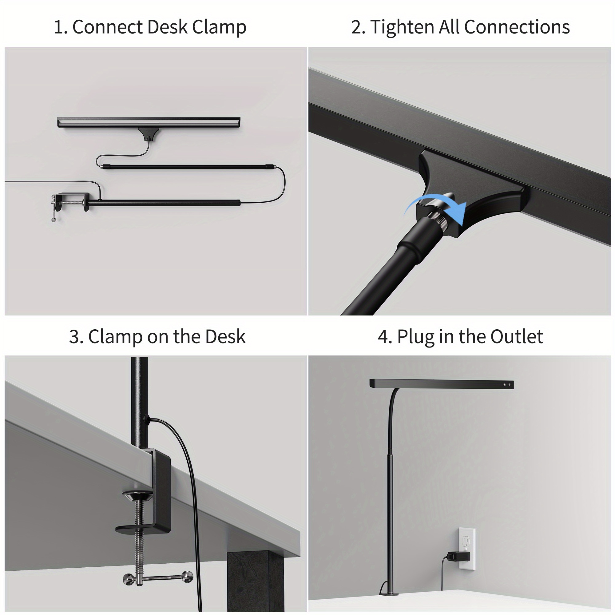• [LED Desk Lamp] Desk Lamp | 3 Color Modes, Stepless Dimming, Touch Control, USB Clamp Lamp for Reading, Working, Studying