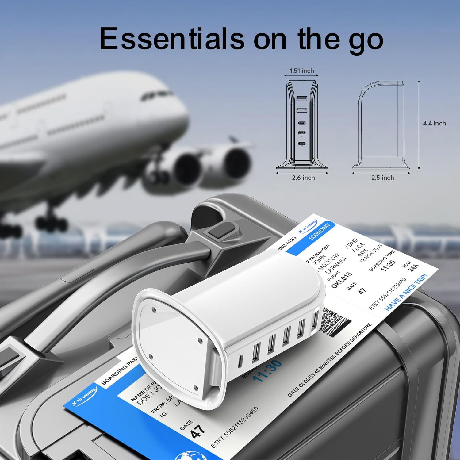 Block 6 in 1 Upoy, 40W USB C Charger 3A, Charging Hub with 5 USB Ports(Shared 6A) for Multiple Electronics, USB Charging Station Multiports, Universal Desktop Phone Charger Travel Ready, Black