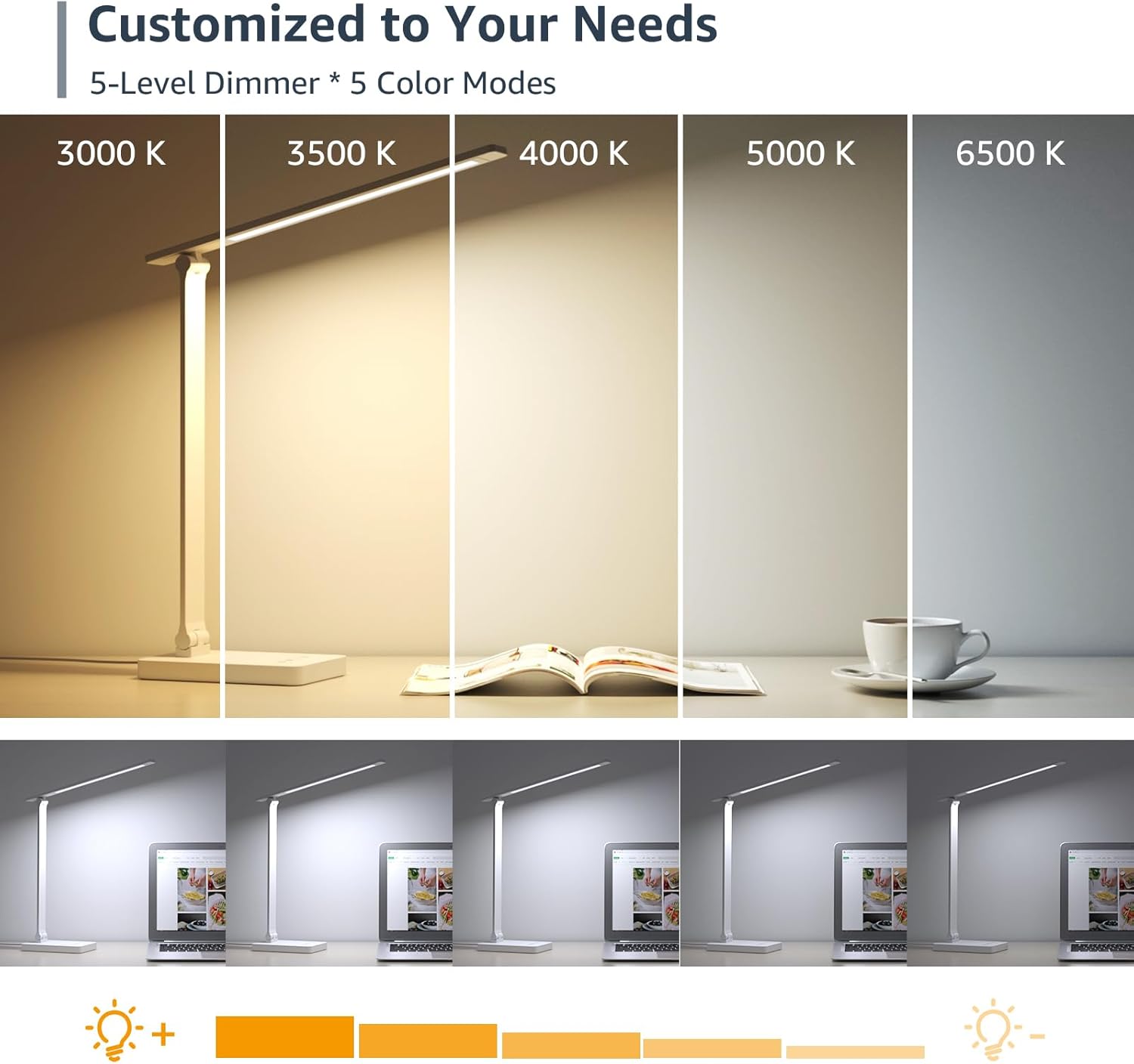 - Multiple Lighting Choices. This led desktop lamp offers 5 lighting modes that can each be paired with one of the 5 brightness levels for a total of 25 different light settings.